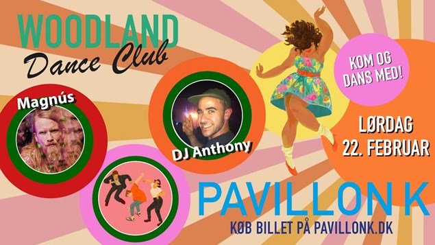 Woodland Dance Club byder på en unik danseoplevelse i Pavillon K, hvor Magnús Sveinn Jónsson, den islandske mester i fri guidet dans, vil guide deltagerne i gang med aftenens festligheder. Magnús' tilgang til dansen er legende og nysgerrig, hvilket gør det muligt for alle at deltage, uanset danseerfaring.